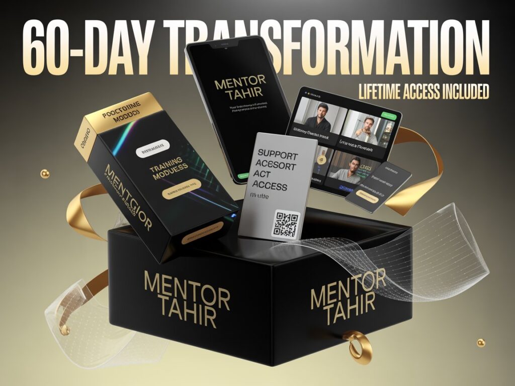 Mentor Tahir is Pakistan’s leading online income expert. Through his mentorship programs, he’s helped 87 students achieve ₨1 lakh+/month online income and hundreds more build substantial side incomes. His mission is to help 1,000 Pakistanis achieve financial freedom through online businesses by 2025.